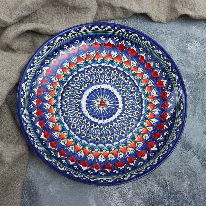 Ляган Риштанская Керамика "Узоры", 28 см, синий