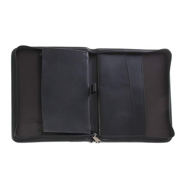 Представительная деловая папка на молнии.Изготовлена из черного К/З Люкс.Размер изделия 250 на 350 мм. Толщина папки 30 мм.Внутри расположено удобных, вместительных 4 кармана.
