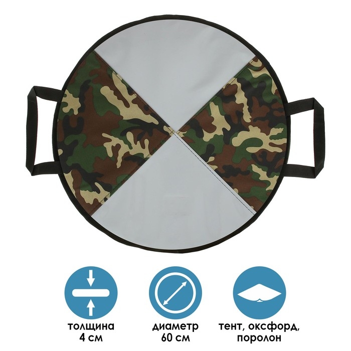 Ледянка предназначена для весёлого активного досуга на зимних горках. Внутри модели — мягкий поролон, по бокам — надёжные ручки, которые уберегут кроху от падения на крутых поворотах. Внешний слой выполнен из прочного материала, поэтому вы сможете без труда почистить ледянку.
