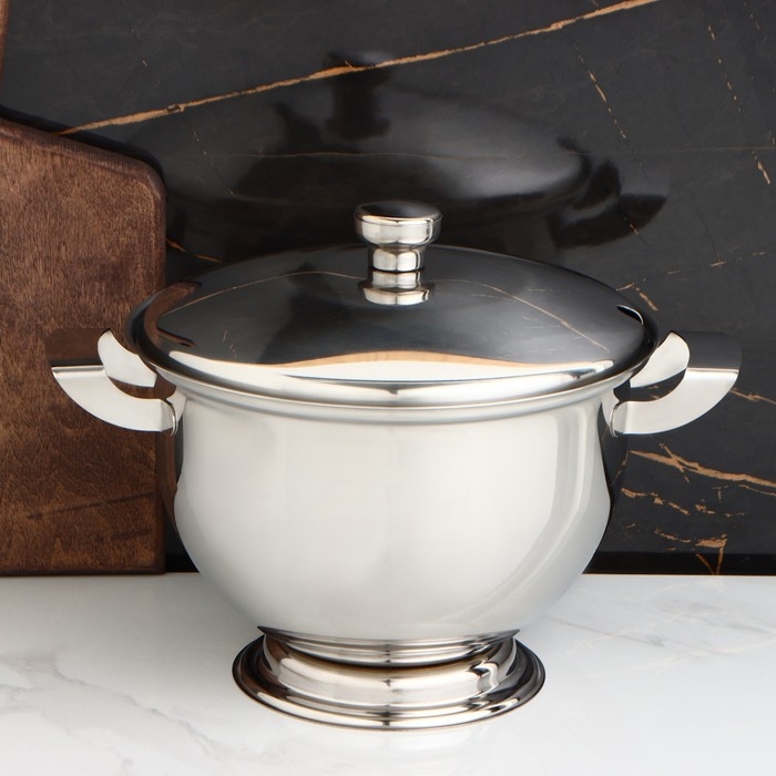 Супница из нержавеющей стали станет элегантным дополнением сервировки стола. Предмет можно использовать для хранения, разогрева и подачи жидких блюд.