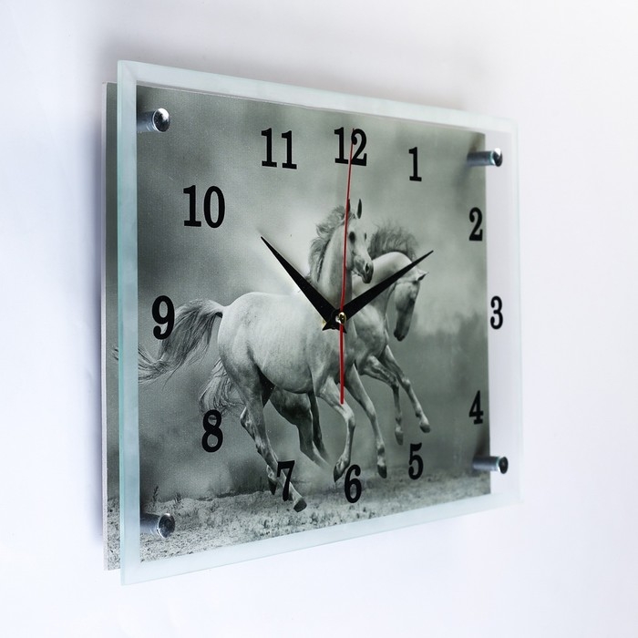 Часы-картина настенные, интерьерные "Серые лошади", бесшумные, 25 х 35 см
