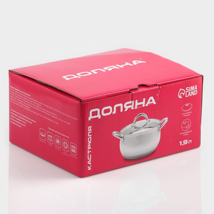 Кастрюля из нержавеющей стали Доляна «Гиперион», 1,9 л, d=16 см, с крышкой
