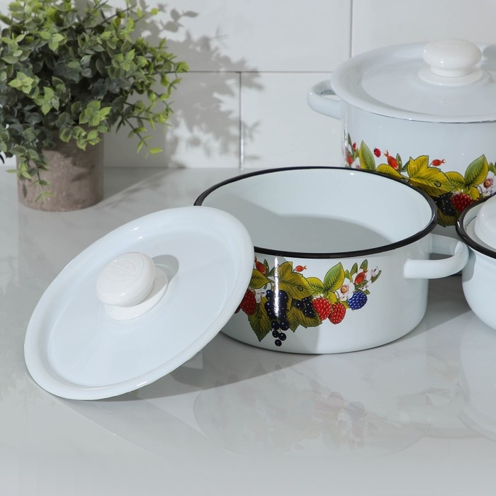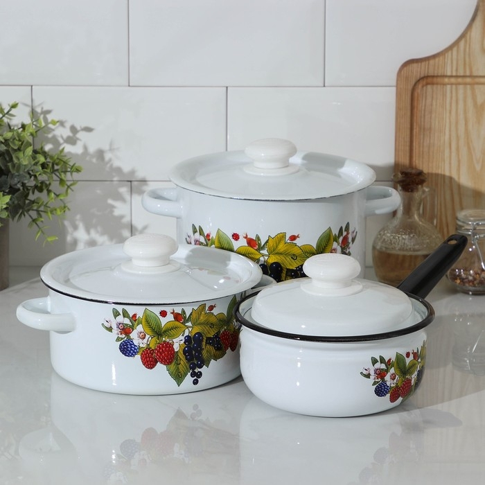 Набор посуды «Ягодный чай», 3 предмета: кастрюли 2 л, 3,5 л; ковш 1,5 л, индукция
