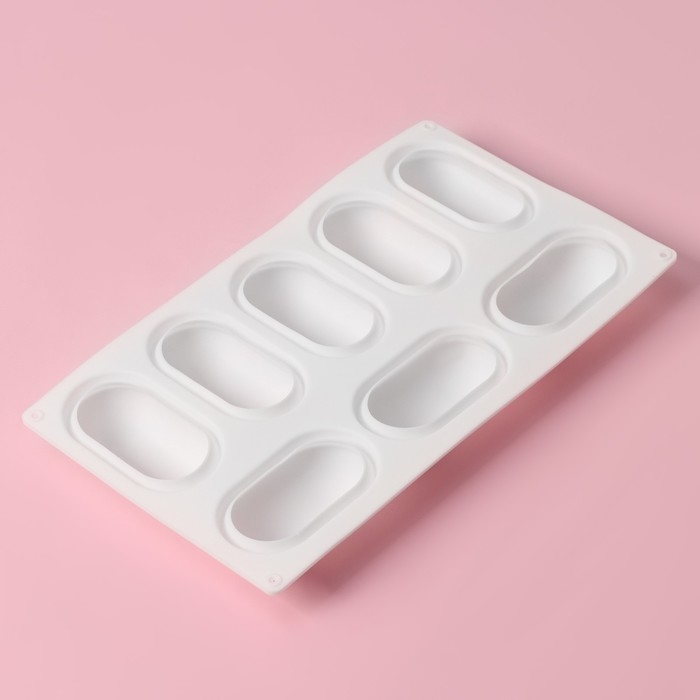 Форма для муссовых десертов и выпечки Доляна «Раузи», 30×17,5×3,5 см, 8 ячеек (8,7×4,7 см), цвет белый