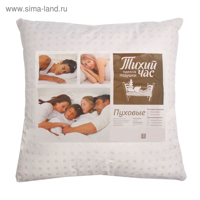 Подушка высокая Тихий Час Пуховые, размер 68х68 см, тик