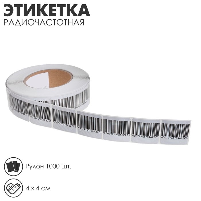 Этикетка радиочастотная «Штрих-код» 4×4, рулон 1000 шт.