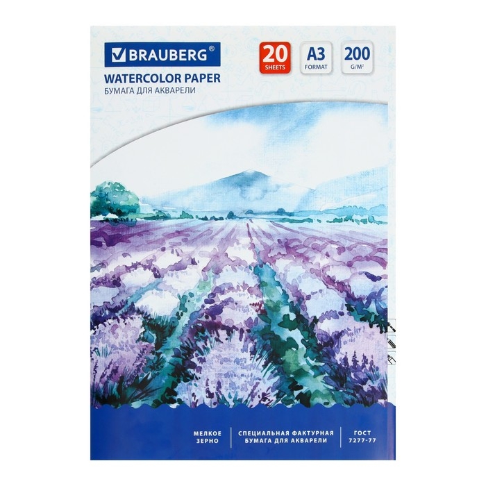 Бумага для акварели А3, 297 х 420 мм, 20 листов, блок 200 г/м2, бумага по ГОСТ 7277-77