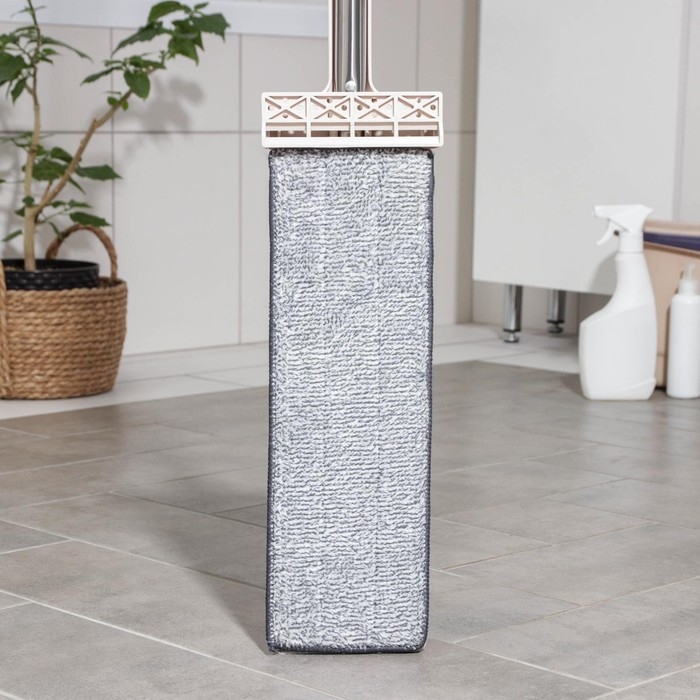 Швабра для мытья пола плоская гибкая Доляна, насадка из микрофибры букли 29×13 см, телескопическая стальная ручка 82(125) см, цвет серый