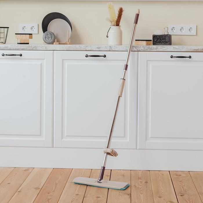 Швабра для мытья пола плоская Доляна, насадка из микрофибры 43×14 см, телескопическая ручка 80(120) см