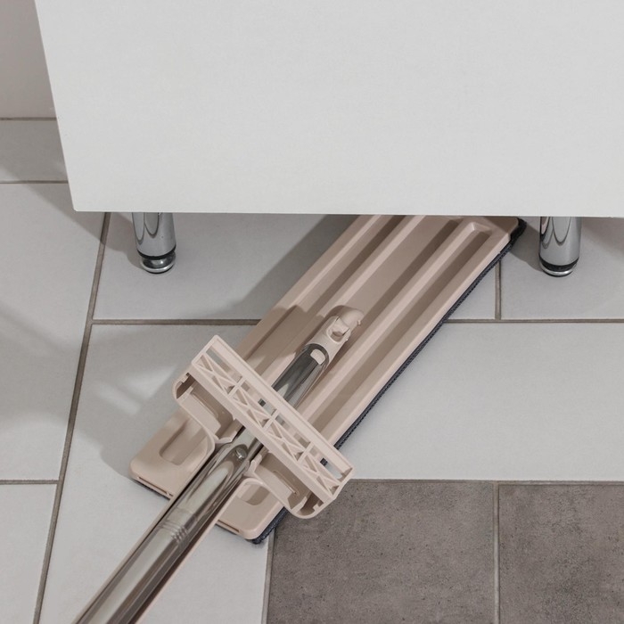 Ещё одно удобство изделия заключается в том, что с его помощью можно легко промыть пол даже под низкой тумбой или диваном, так как швабра складывается и становится плоской.