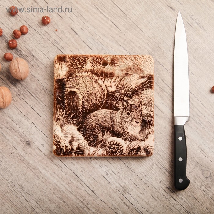 Доска из массива кедра «Белочка на ветке», квадратная, 18 × 18 см