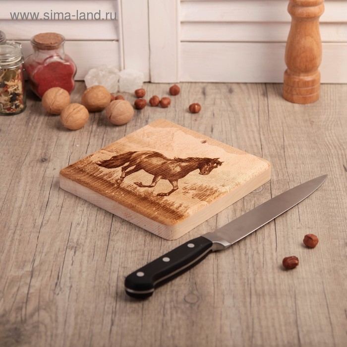 Доска из массива кедра «Лошадь», квадратная, 18 × 18 см