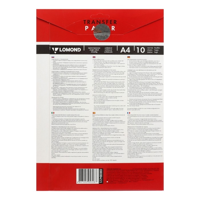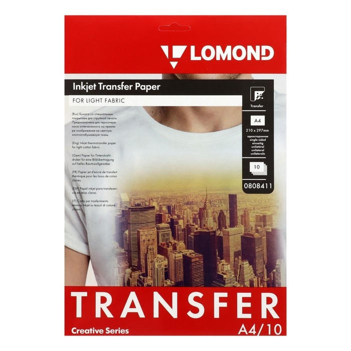 Бумага термотрансферная, для светлых тканей А4, 10 листов LOMOND, 140 г/м2, односторонняя