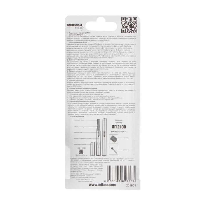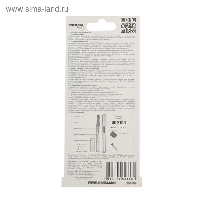 Триммер "МИКМА" ИП 2100, для лица, 1 насадка, 1хААА (не в комплекте)