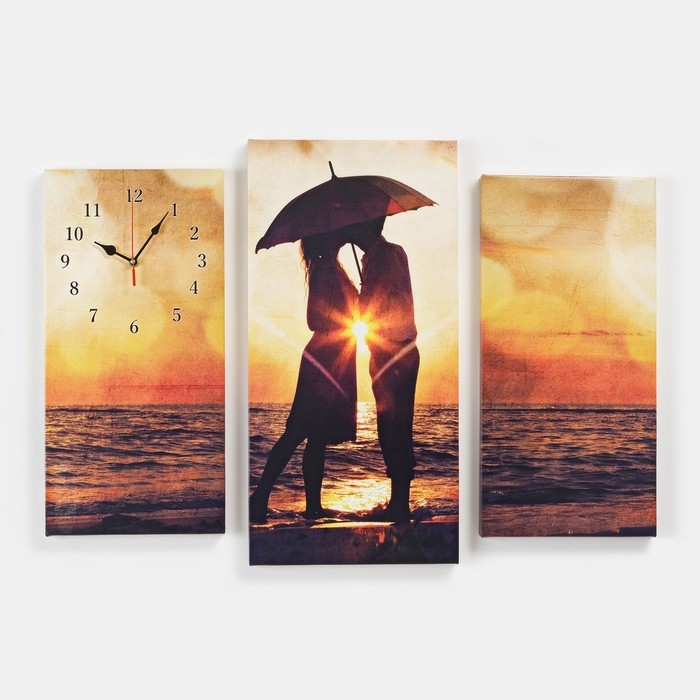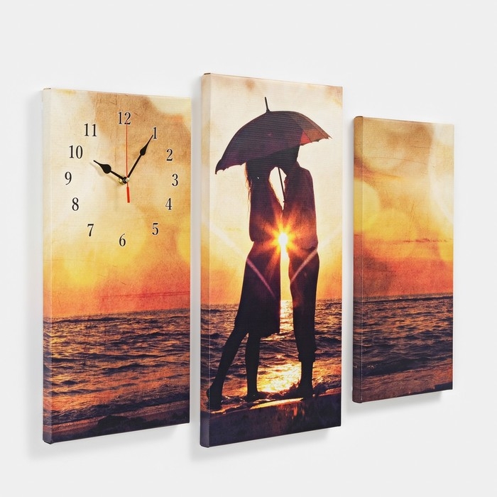 Часы-картина настенные, модульные "Влюблённая пара на берегу", бесшумные, 60 х 80 см, триптих 204506