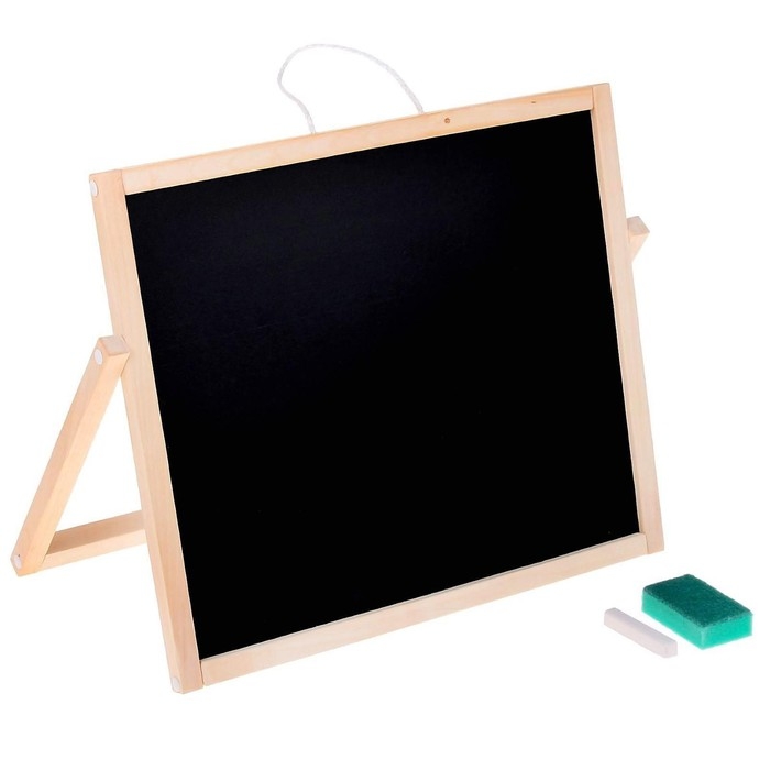 В набор входят: двухсторонняя доска, мелок, губка, набор букв