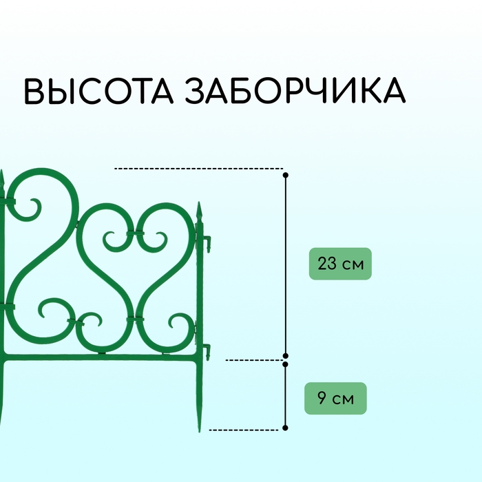 Ограждение декоративное, 25 × 170 см, 5 секций, пластик, зелёное, «Чудный сад»