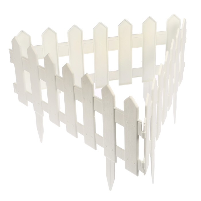 Ограждение декоративное, 30 × 196 см, 4 секции, пластик, белое, «Палисадник»