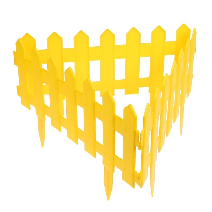 Ограждение декоративное, 30 × 196 см, 4 секции, пластик, жёлтое, «Палисадник»