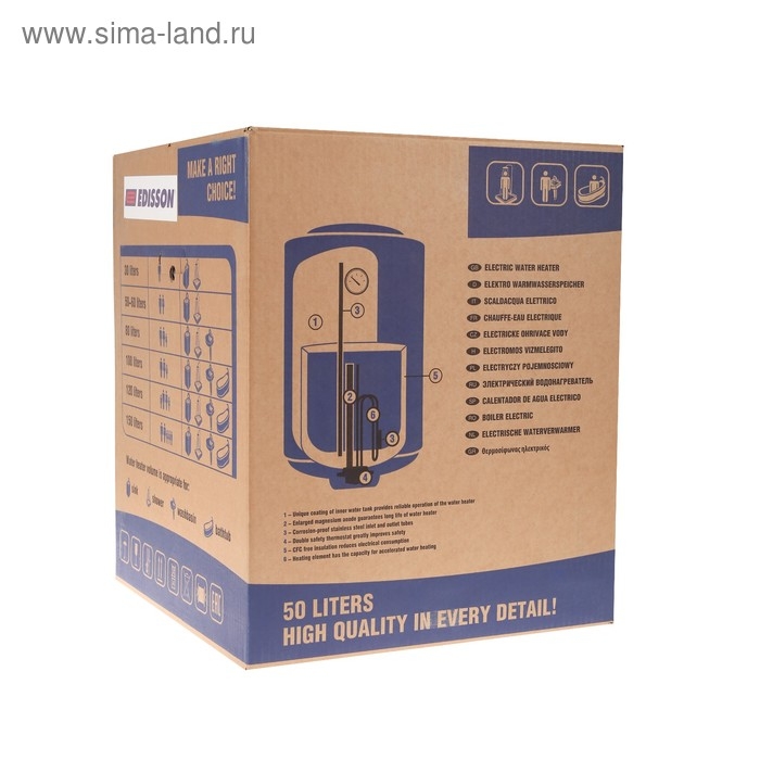 С водонагревателем EDISSON в доме всегда будет горячая вода. Такой агрегат сделает вас независимым от коммунальных служб. Данная модель органично впишется в интерьер благодаря классическому дизайну.
