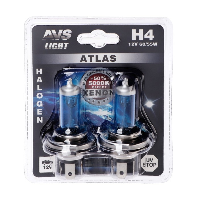 Галогенная лампа AVS ATLAS, H4, 12 В, 60/55 Вт, набор 2 шт