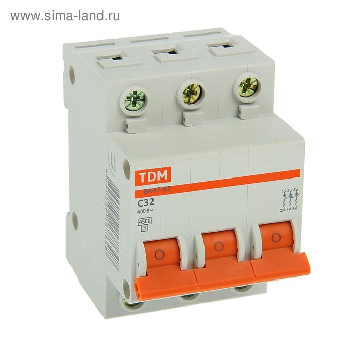 Выключатель автоматический TDM ВА47-63, 3п, 32 А, 4.5 кА