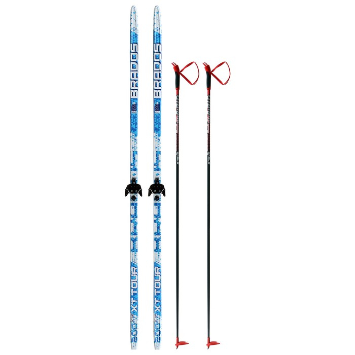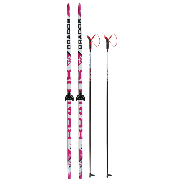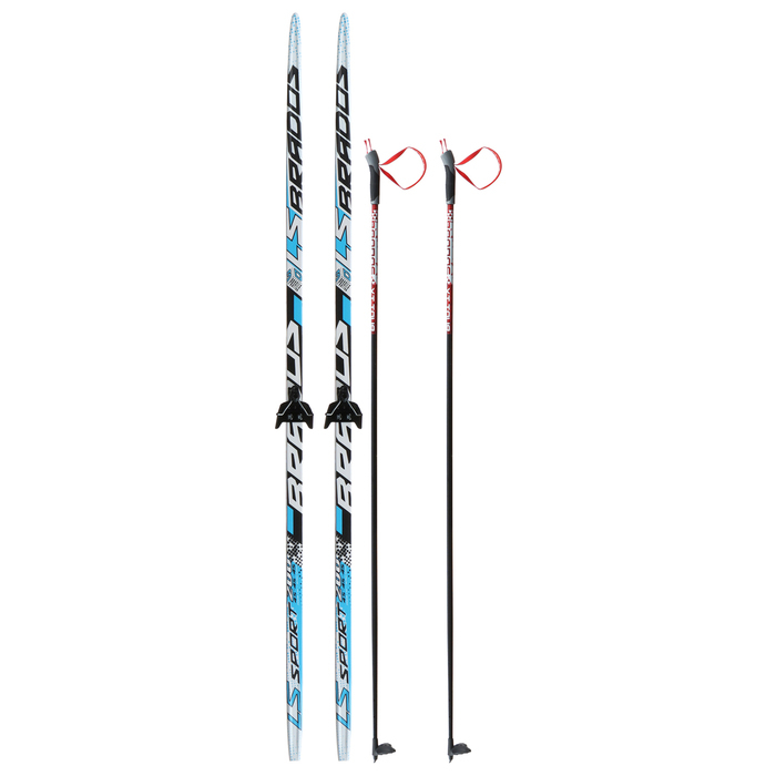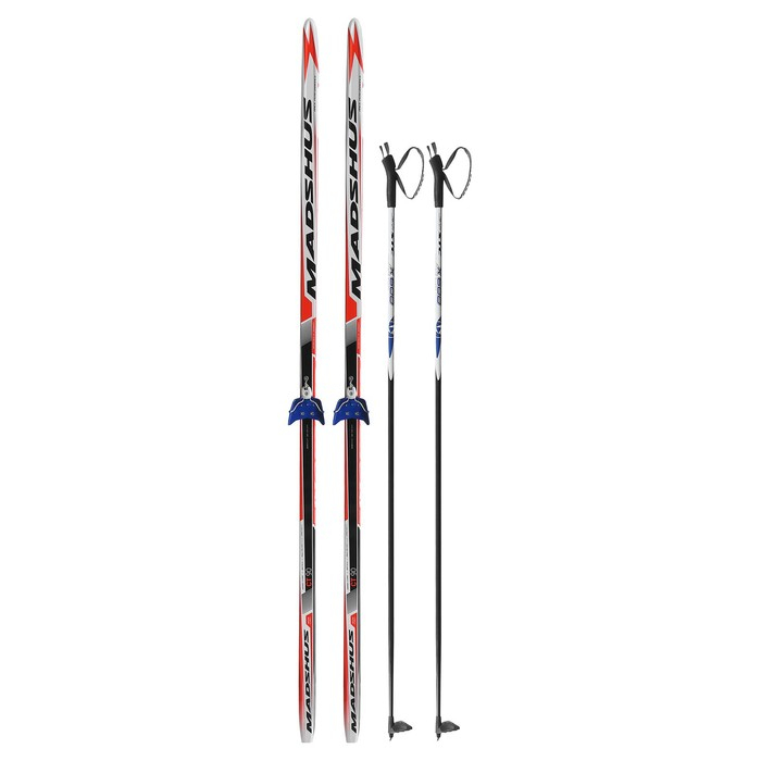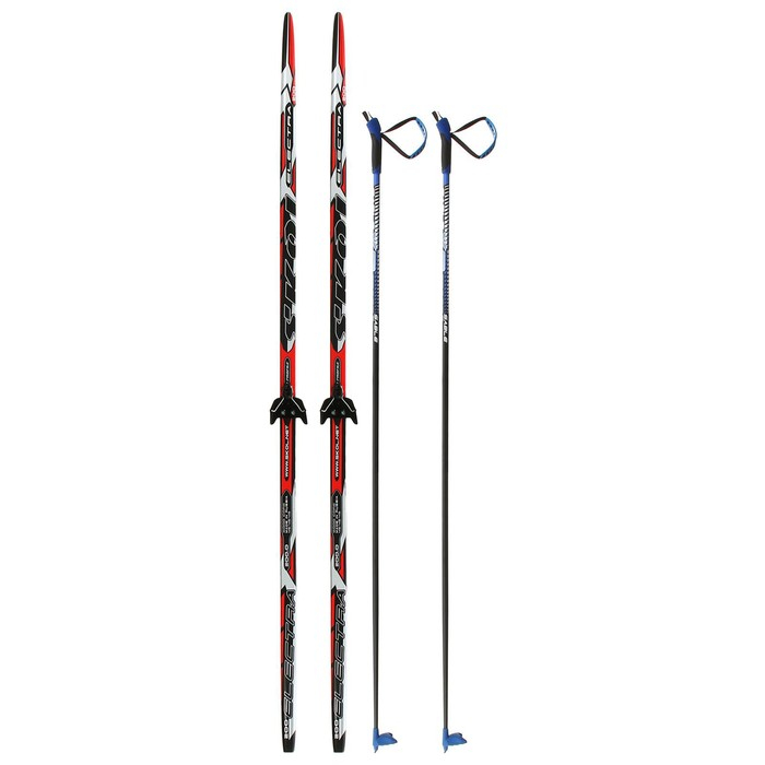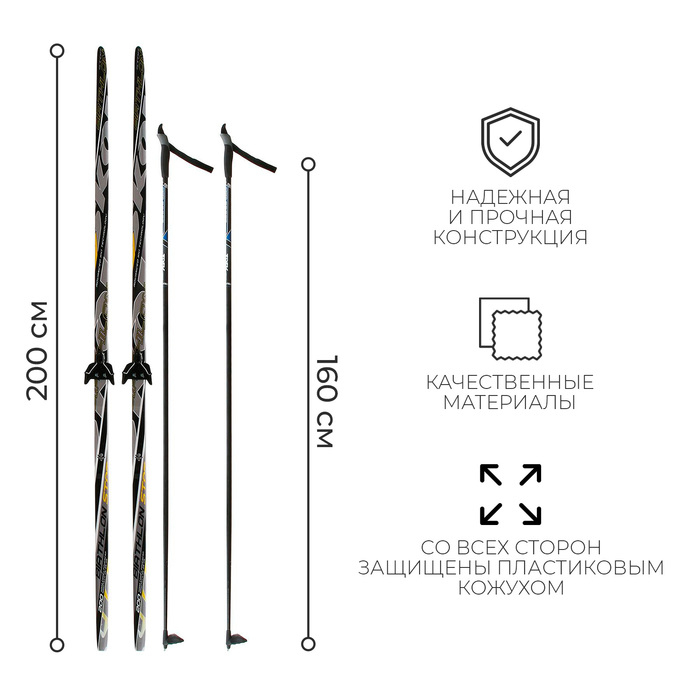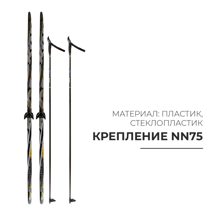 Комплект лыжный: пластиковые лыжи 200 см с насечкой, стеклопластиковые палки 160 см, крепления NN75 мм, цвета МИКС
