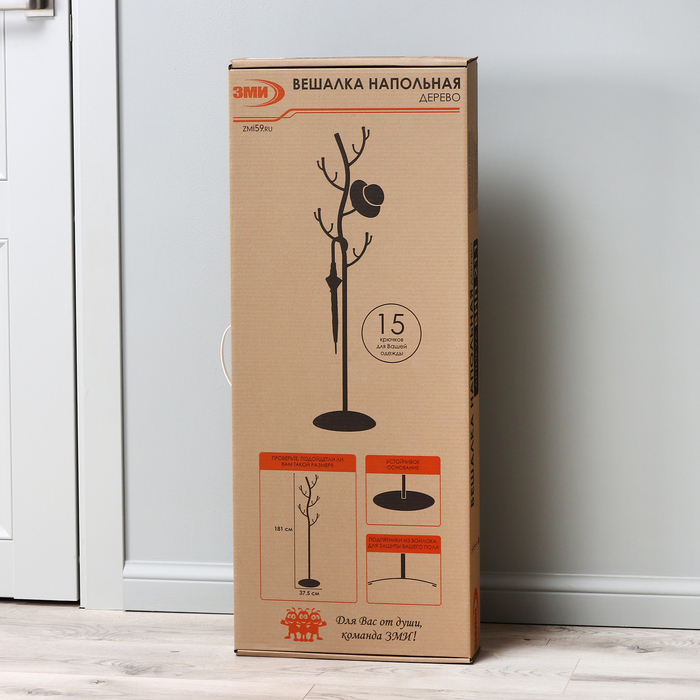 Вешалка напольная «Дерево», 38×37,5×181 см, цвет чёрный