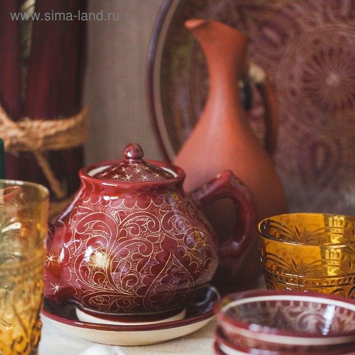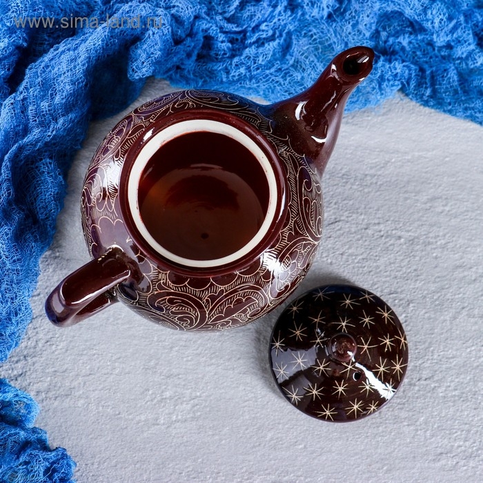 Чайник Риштанская Керамика "Узоры", 850 мл, коричневый