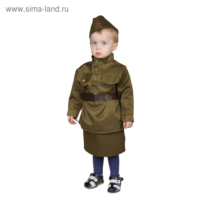 Карнавальный костюм «Солдаточка-малютка», пилотка, гимнастёрка, ремень, юбка, 2-3 года, рост 94-104 см