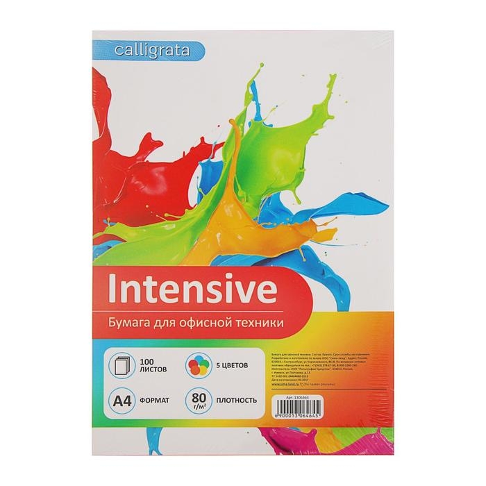 Бумага цветная А4, 100 листов Calligrata Интенсив, 5 цветов, 80 г/м²