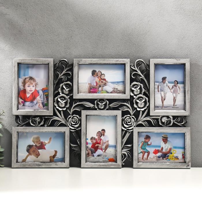 Фоторамка пластик на 6 фото 10х15 см "Куст роз" тёмное серебро 35,5х56,5х2 см