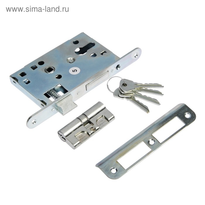 Замок врезной "Птимаш" ЗВ4-3.08 (ЗВ4-1.55) серебро СТЯЖКИ м/о 55 Замок, 4 ключа