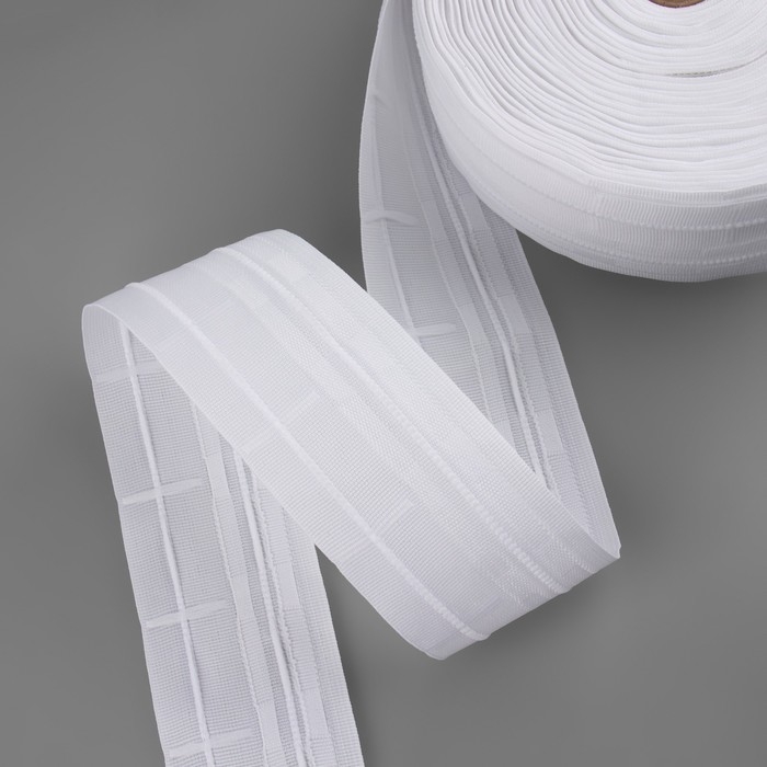 Шторная лента фиксированная сборка, органза, 6 см, 50 ± 1 м, цвет прозрачный/белый