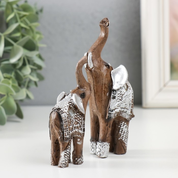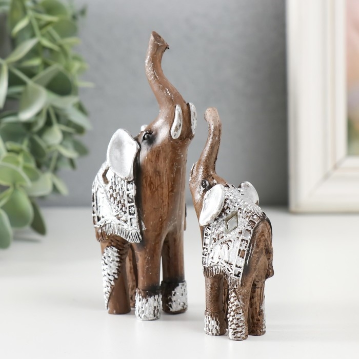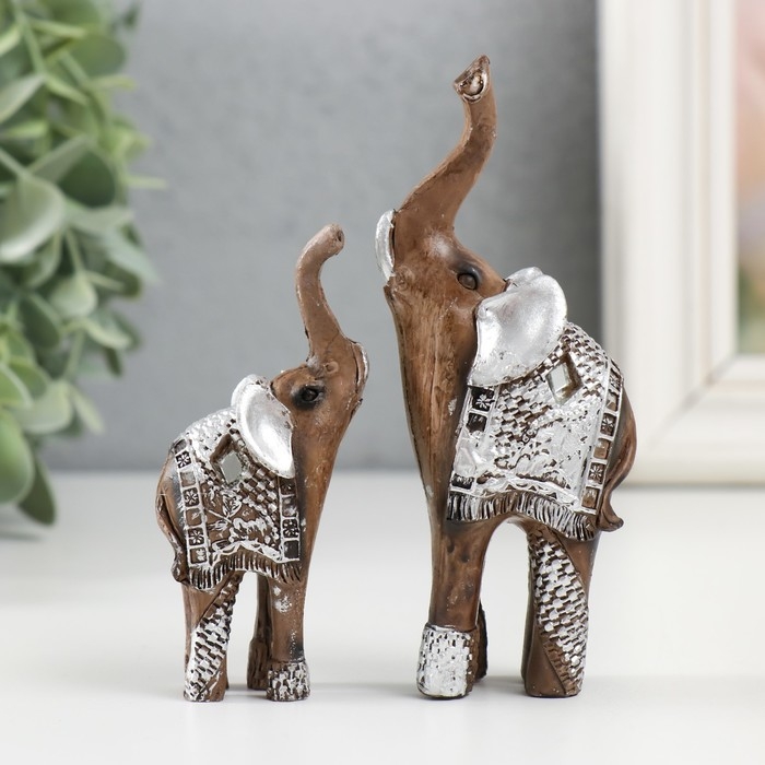 Сувенир полистоун "Два слоника в серебристой попоне" набор 2 шт 11х8,3х3,5 см
