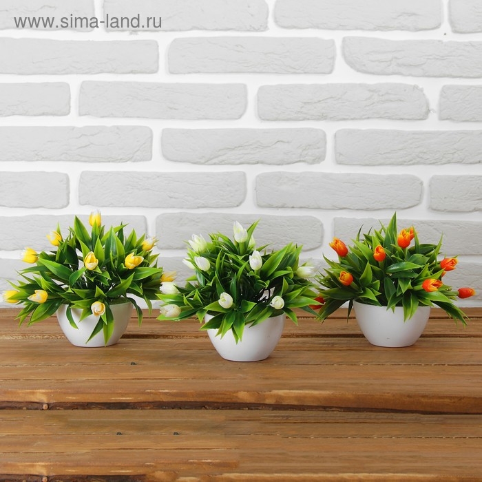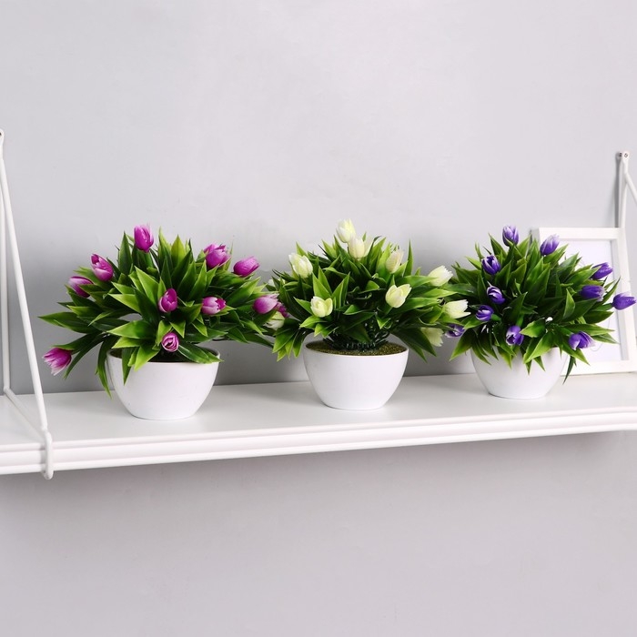 Бонсай в горшке "Тюльпаны" 14х16 см, микс