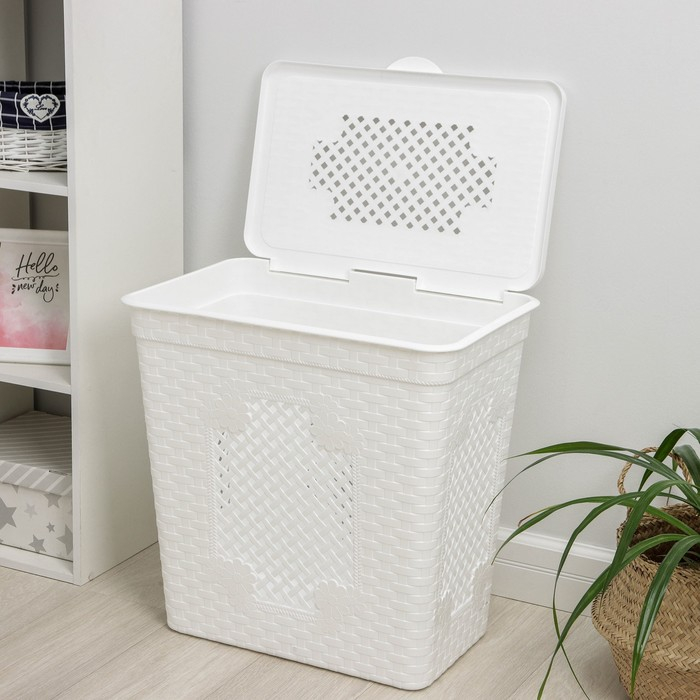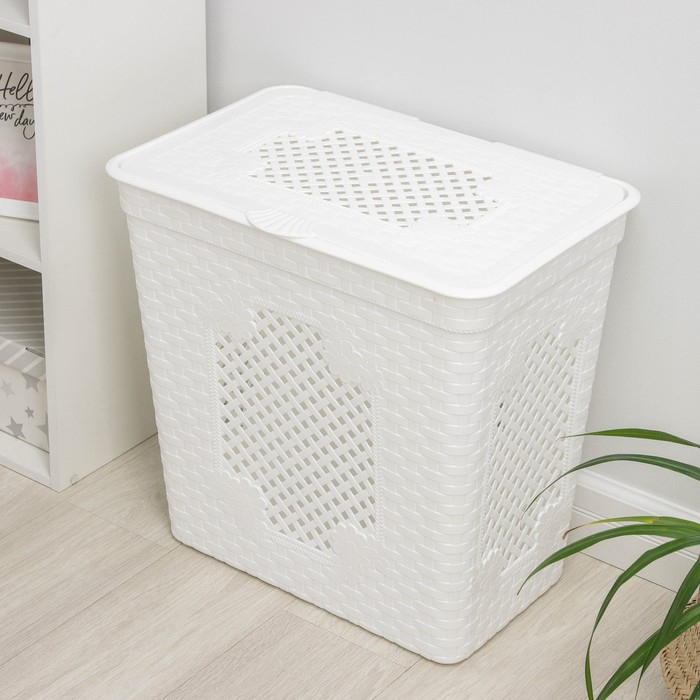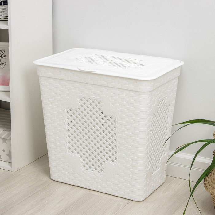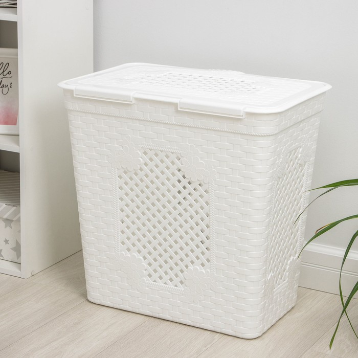Корзина бельевая с крышкой «Плетёнка люкс», 85 л, 58×39×57 см, цвет белый