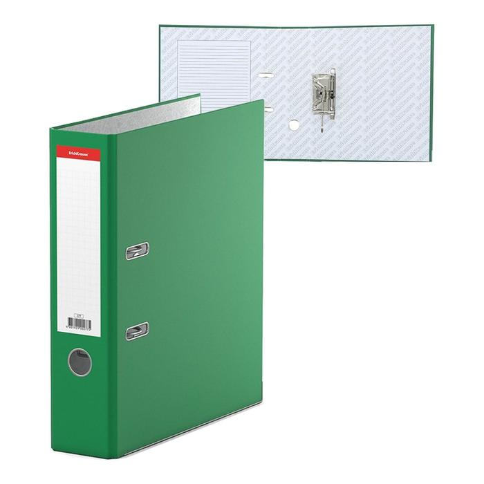 Папка-регистратор А4, 70 мм, ErichKrause, Standard, бумвинил, с этикеткой на корешке, нижний металлический кант, зелёная