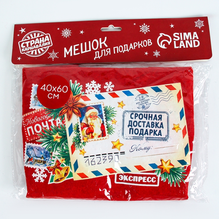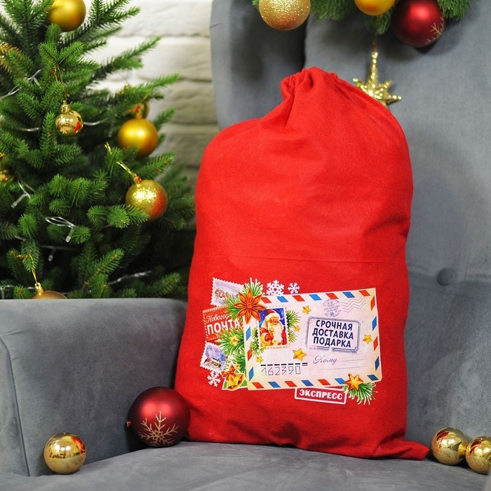 Новогодний мешок Деда Мороза «Срочная доставка подарков», 40 × 60 см.