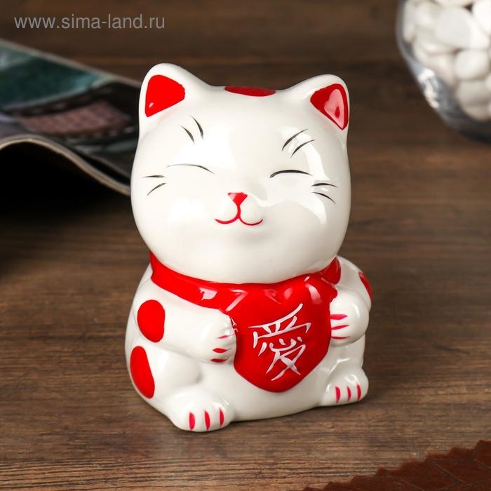 Копилка керамика "Манэки-нэко с сердечком" 9,5х7х7,5 см