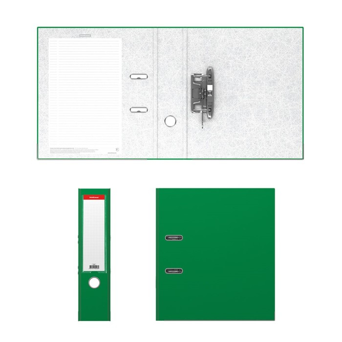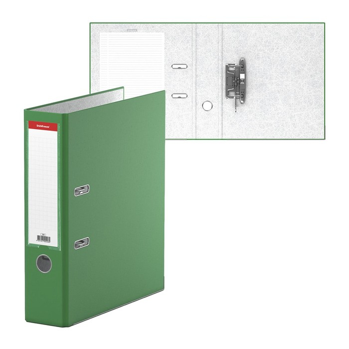Папка-регистратор А4, 70 мм, "Бизнес", собранная, зелёная, пластиковый карман, металлический кант, картон 2 мм, вместимость 450 листов