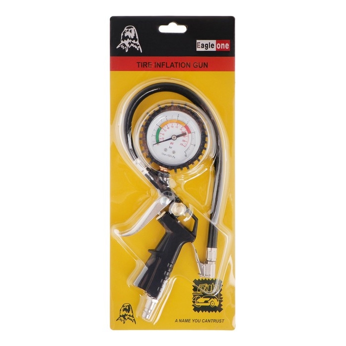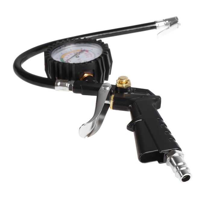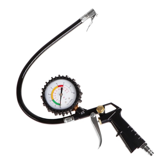 Пистолет для подкачки шин с манометром – это профессиональный пневмоинструмент, который является одним из основных на различных СТО, в автомастерских, сервисных центрах и гаражах. В зависимости от выбранной насадки, также может применяться для продувки – очистки разных деталей сильным напором воздуха.