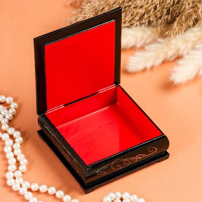 Шкатулка "Цветы" с накладкой, 10×10 см, лаковая миниатюра