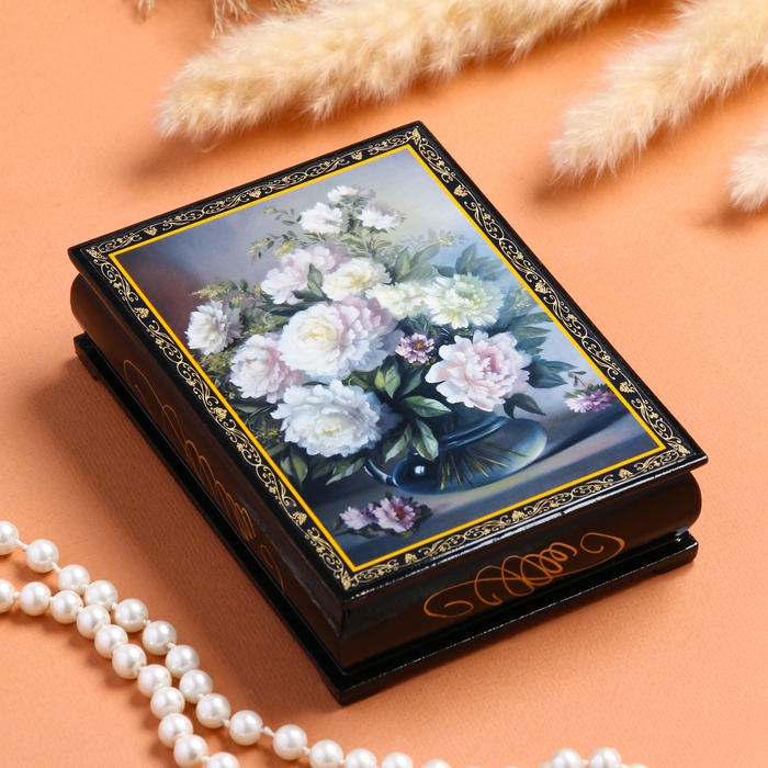 Шкатулка «Пионы в вазе», 10×14 см, лаковая миниатюра