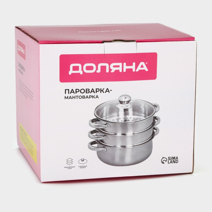 Мантоварка - пароварка из нержавеющей стали Доляна «Классика», d=24 см, 3 уровня, общий объём — 7,9 л