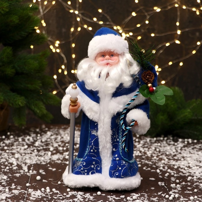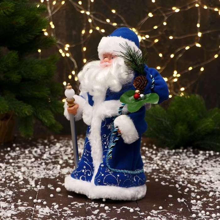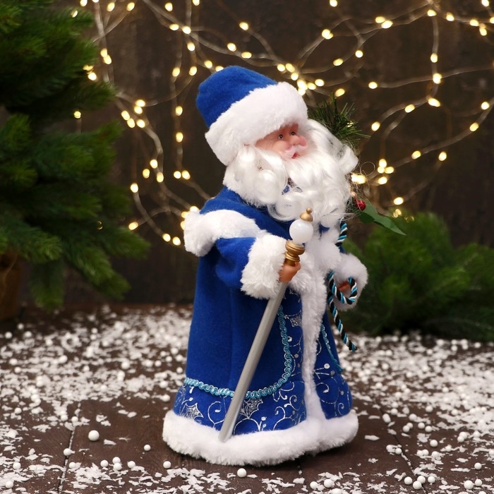 Дед Мороз "Синяя шуба, с посохом" 27 см