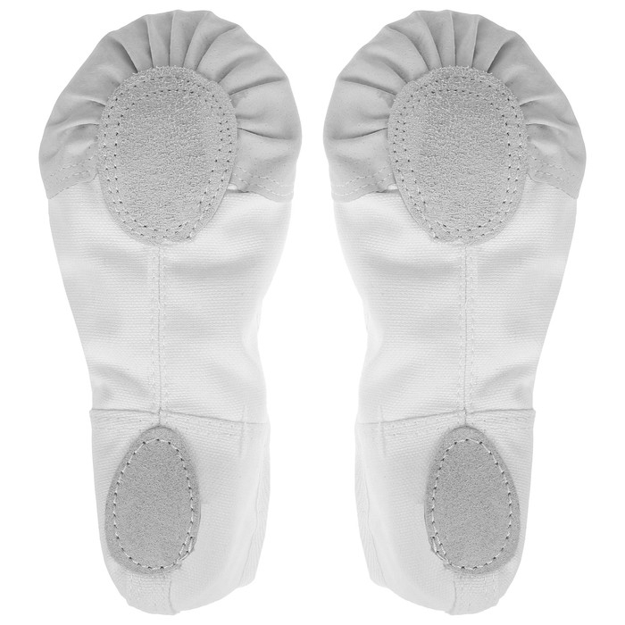 Балетки подходят для занятий танцами, гимнастикой и спортом. Вставки на подошве из натуральной кожи не скользят на гладком паркете и обеспечивают хорошее сцепление с площадкой. Балетки держатся на ноге с помощью небольших резиночек. Обувь на тканевой основе плотно прилегает к ноге и в то же время не сковывает движений. Нейтральный цвет подойдёт любому костюму.