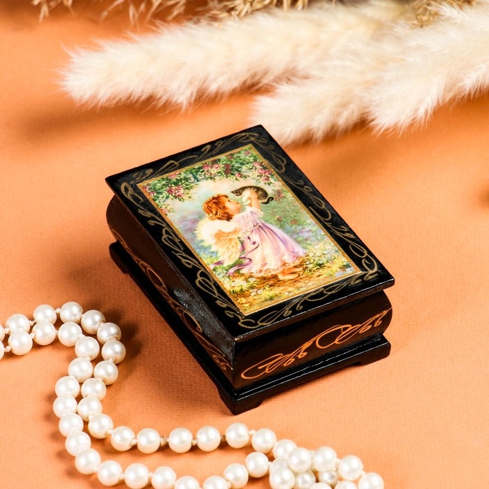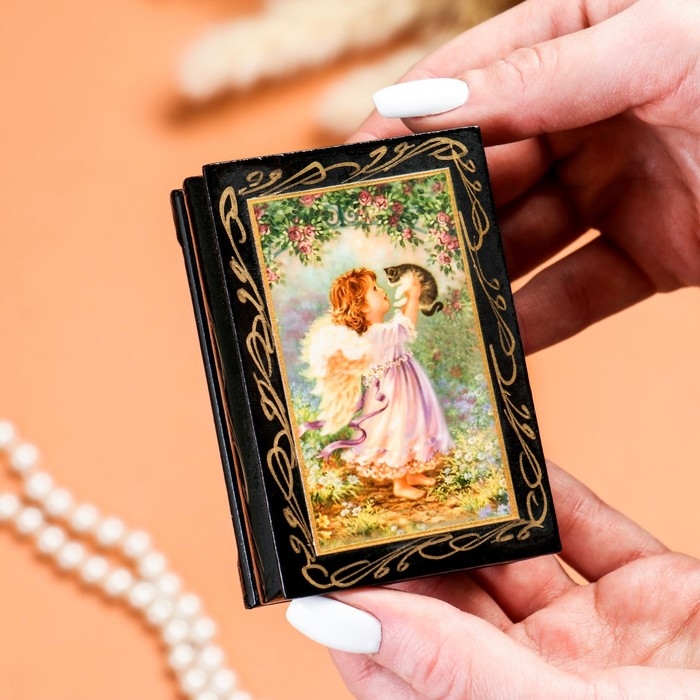 Шкатулка «Ангел с котёнком», 6х9 см, лаковая миниатюра