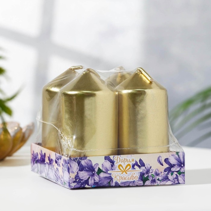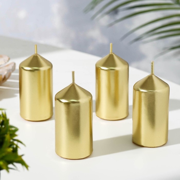 Набор свечей "Столбик", 4 штуки, золотой 7х3,8см