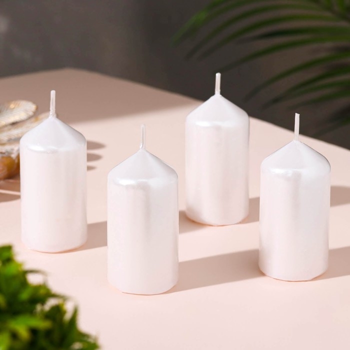 Набор свечей "Столбик", 4 штуки, перламутровый 7х3,8см